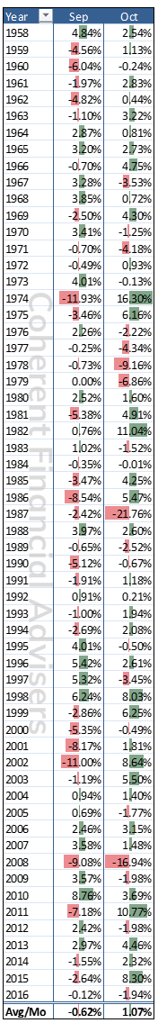 Is October the worst month of the year for stocks, or has it taken the blame for September? Sensationalism is a mainstay of articles on seasonal or calendar investing. We’ll take an objective, Coherent approach to stock market seasonality.
